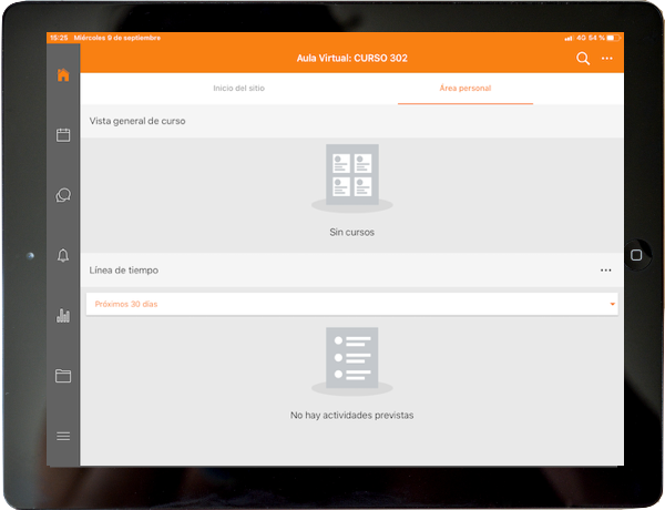 Os menús adáptanse á área dispoñible de pantalla, polo que no caso de usar Moodle Mobile desde unha tableta a área de traballo é moito maior e resulta moito máis cómodo para o usuario.