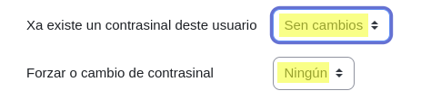 | a) Se queremos que todo o alumnado teña que mudar o seu contrasinal | b) Se queremos que o alumnado manteña o contrasinal que tiña |