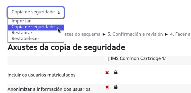 Procedemento de copia de seguridade dun curso Moodle.