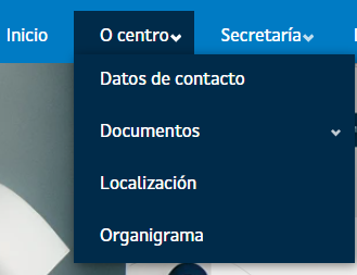 - Visitando a portada da web pódese comprobar que no menú principal, xa colgan de O CENTRO as ligazóns correspondentes aos termos da taxonomía.