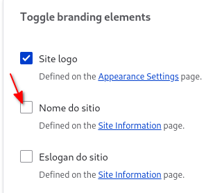 Buscar en Encabezado o bloque Marca do sitio e Configurar.