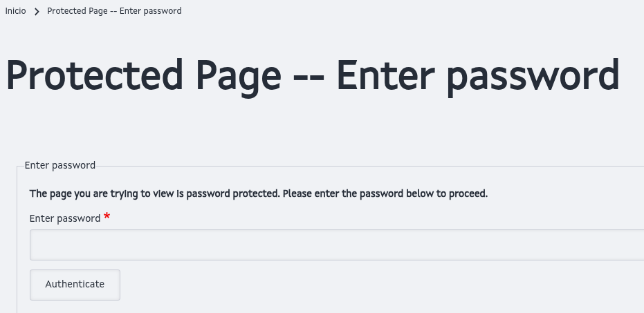 En ocasións pode ser necesario publicar un contido na web de xeito que adicionalmente ás posibles restricións de acceso establecidas polos permisos dos roles sexa necesario a introdución dun contrasinal para a súa visualización.