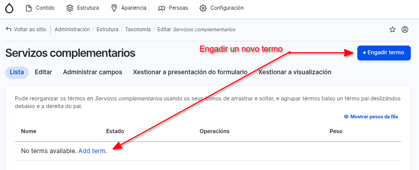 • Premer no botón + Engadir termo que leva ao seguinte formulario: