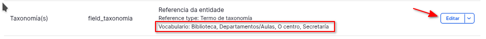 • Premer no botón "Editar" do campo Taxonomía(s).