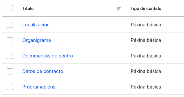 - Utilizarase para contidos de caracter máis estático e que son vixentes durante un periodo longo de tempo. Por exemplo: Historia do centro, Datos de contacto, Composición dos órganos de goberno, Horarios, Documentación, etc.