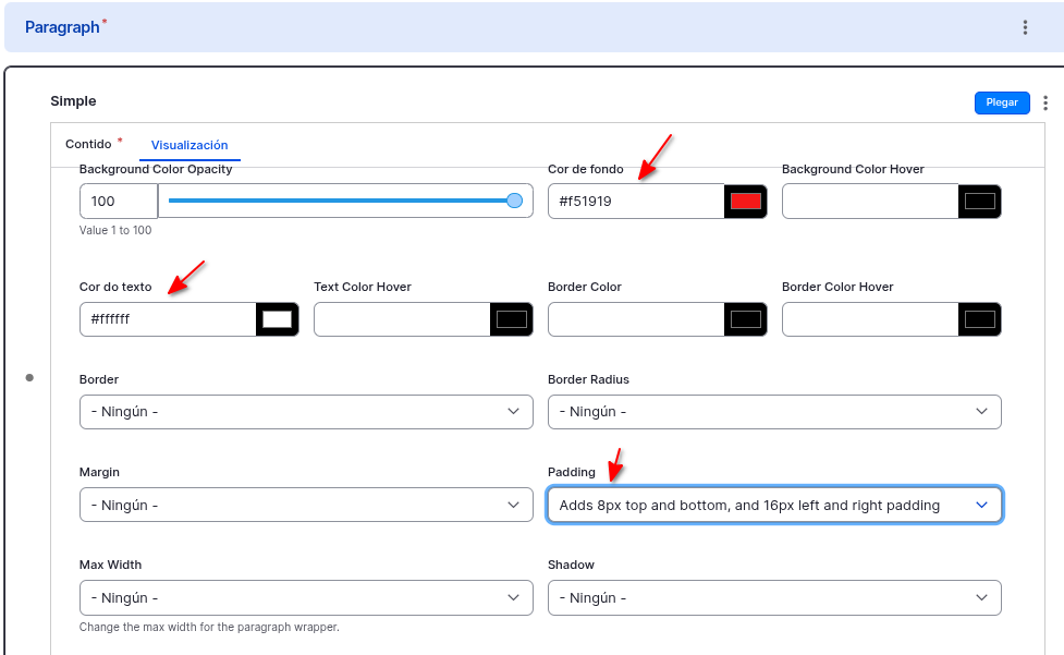 - Paragraphs -> Simple -> Editar