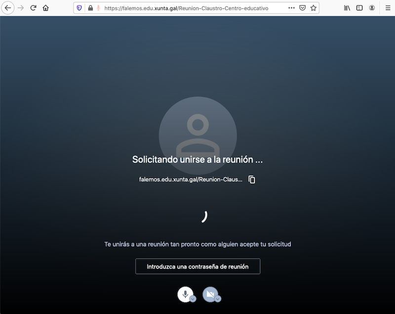 Se está activado o modo de Sala de Espera, propoñeráselle solicitar o acceso á reunión.