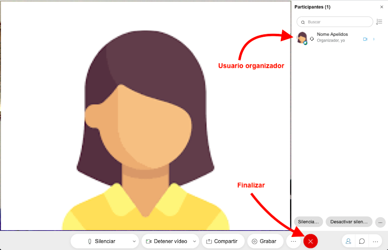 Silenciar audio. Permite activar/desactivar o micrófono