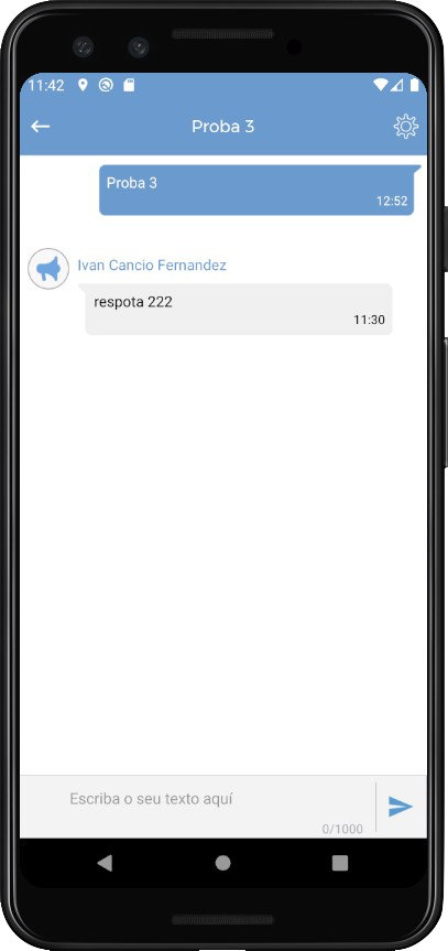 O chat permite enviar mensaxes, ligazóns, ademáis acceder á configuración do propio chat.