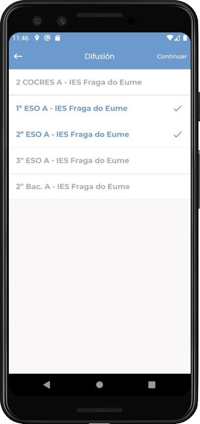 Ao crear unha mensaxe de difusión deberanse seleccionar os grupos participantes