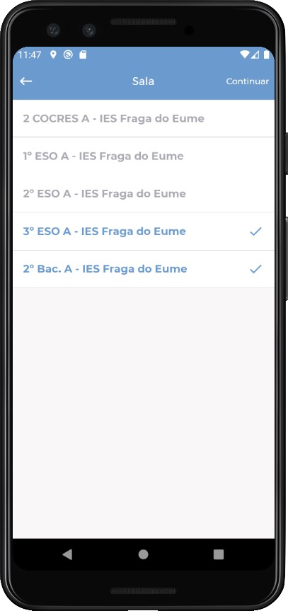 Ao crear unha sala, igual que no caso das mensaxes de difusión, tamén se deberán seleccionar os grupos participantes.