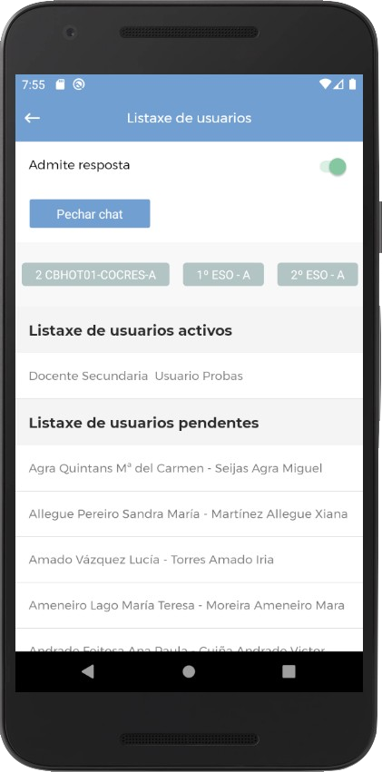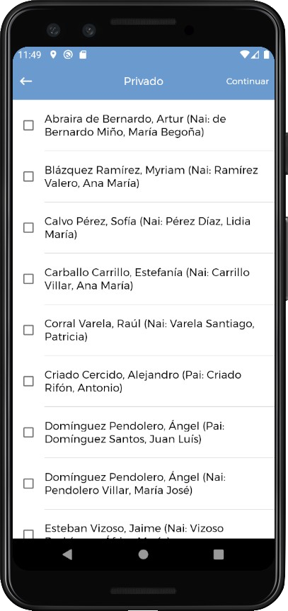 Unha vez elixido o grupo, pódese ver a listaxe de usuarios do mesmo e poderase escoller aos usuarios.