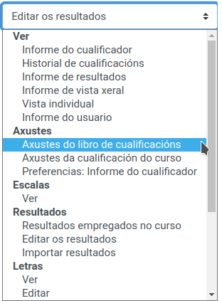 Dirixímonos a Axustes do libro de cualificacións, onde teremos todos os elementos de cualificación