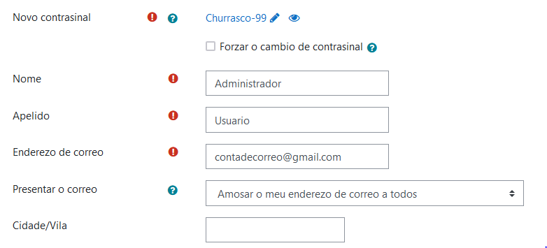 E clic en Actualizar o perfil. Inserimos un nome do sistio e nome curto, se o desexamos o fuso horario, e unha conta de correo, gardamos e listo, rematamos a instalación de Moodle