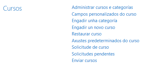 Clic en Administración do sitio e seguidamente en Cursos