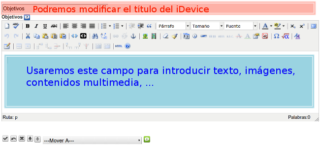 - Crea un iDevice "Objetivos". Muévelo arriba. Modifica su título.
