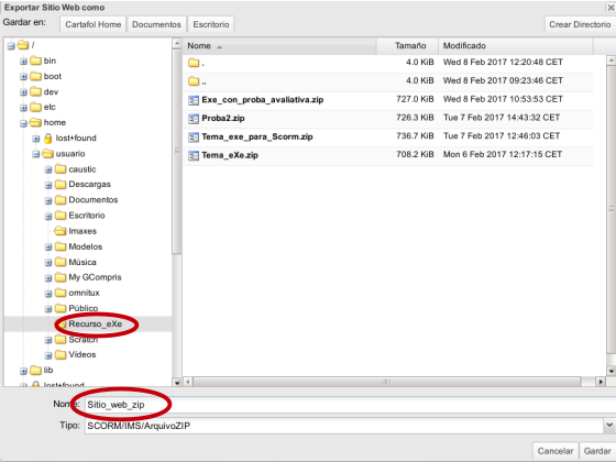 Neste caso imos a facer como exemplo a exportación a arquivo .zip e a integración na aula virtual