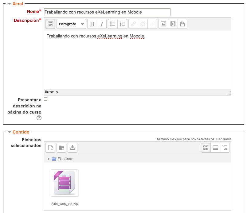 Para integrar un contido web na aula virtual seguimos os seguintes pasos: