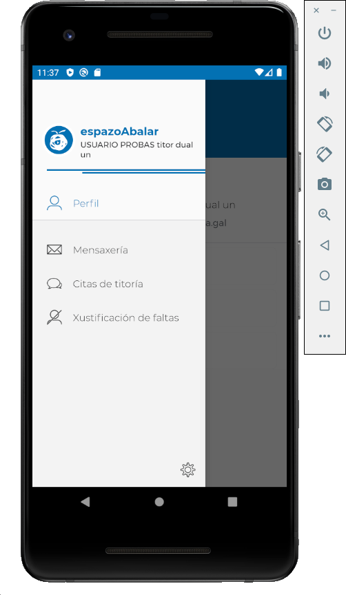 Desde o menú lateral poderase acceder ás diferentes zonas da aplicación: