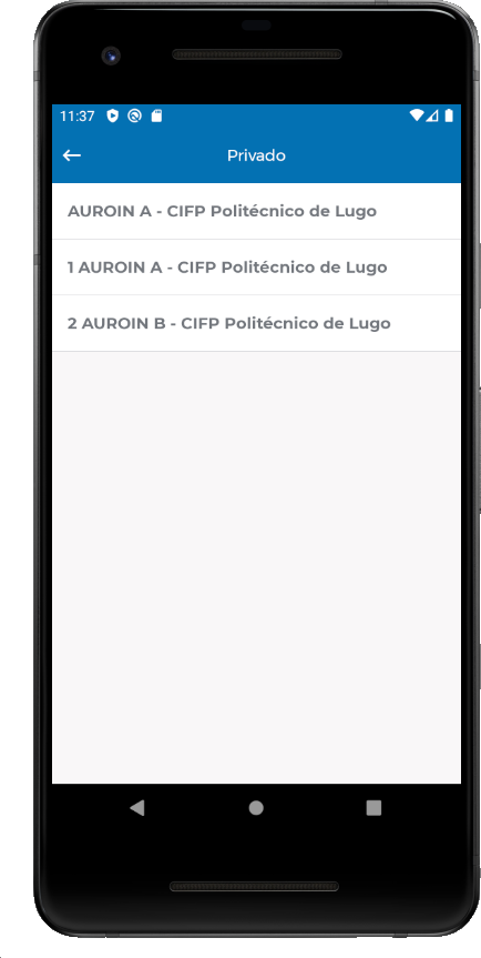 Ao escoller crear un chat Privado primeiro hai que localizar o grupo ao que pertence o usuario co que queremos abrir unha conversa privada.