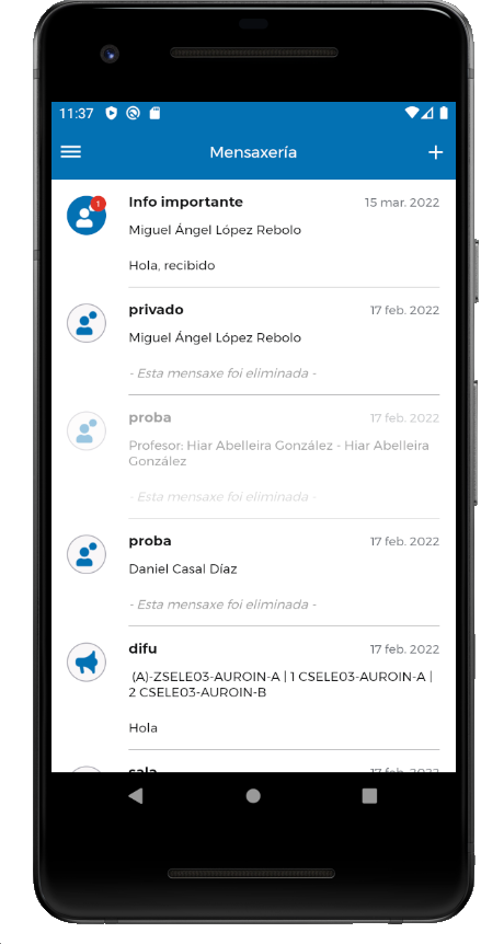 mensaxes enviadas polo profesorado sairán con fondo azul e
