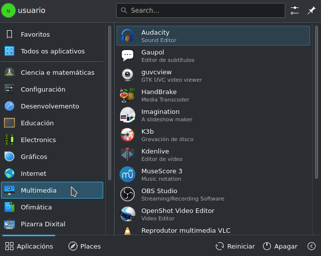 Menú Multimedia en abalinux
