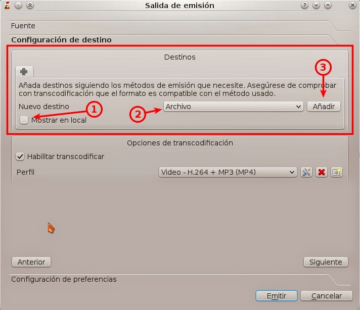 Neste manual imos compartir unha pelicula na nosa rede local. Para iso facemos clic en Arquivo > Engadir.... Seleccionamos o ficheiro que desexamos compartir e dámoslle a Abrir: Facemos clic en Emitir para empezar a configurar as opcións de emisión:
