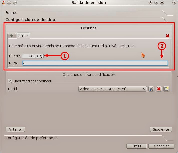 NOTA: Non explicaremos aquí como como abrir o porto, pois cara router é distinto. O porto por defecto para Streaming de VLC é: 8080 aínda que se pode seleccionar outro segundo as nosas necesidades