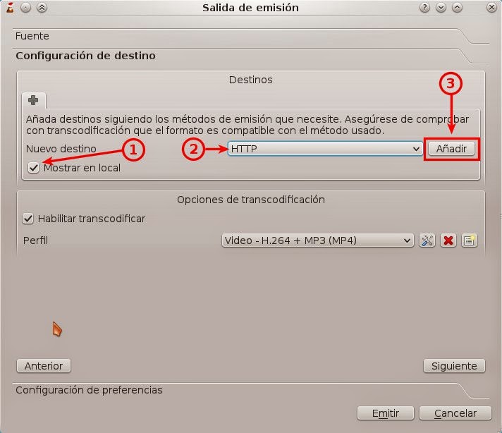4- Pulsamos en Emitir para que os demais equipos da rede poidan ver desde ese momento o vídeo