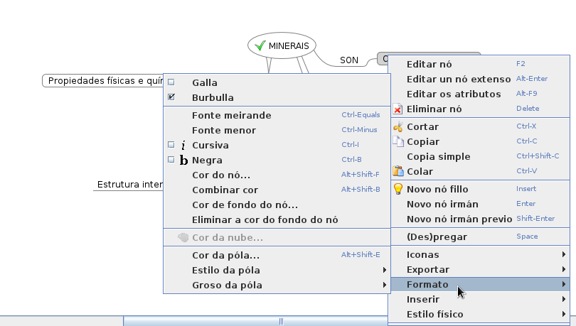 Pódese exportar unha rama seleccionada do mapa conceptual e a garda en formato .mm.
